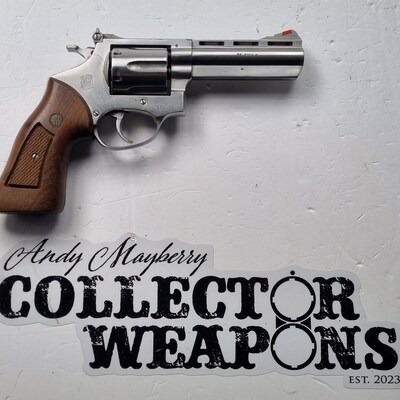 Chambered For .38 Special, Equipped With a 4" Vent Rib Barrel, Red Ramp Front Sight and Adjustable Rear, Wood Grips, and Appears in Good Pre-owned Condition.