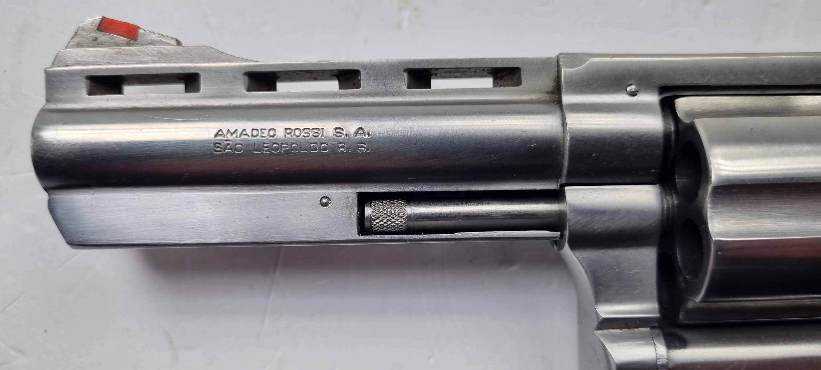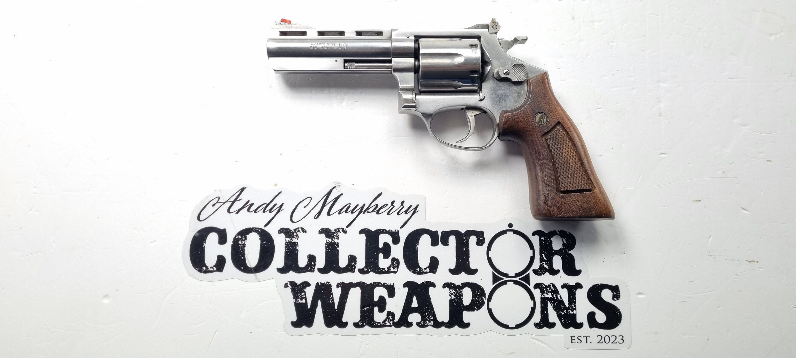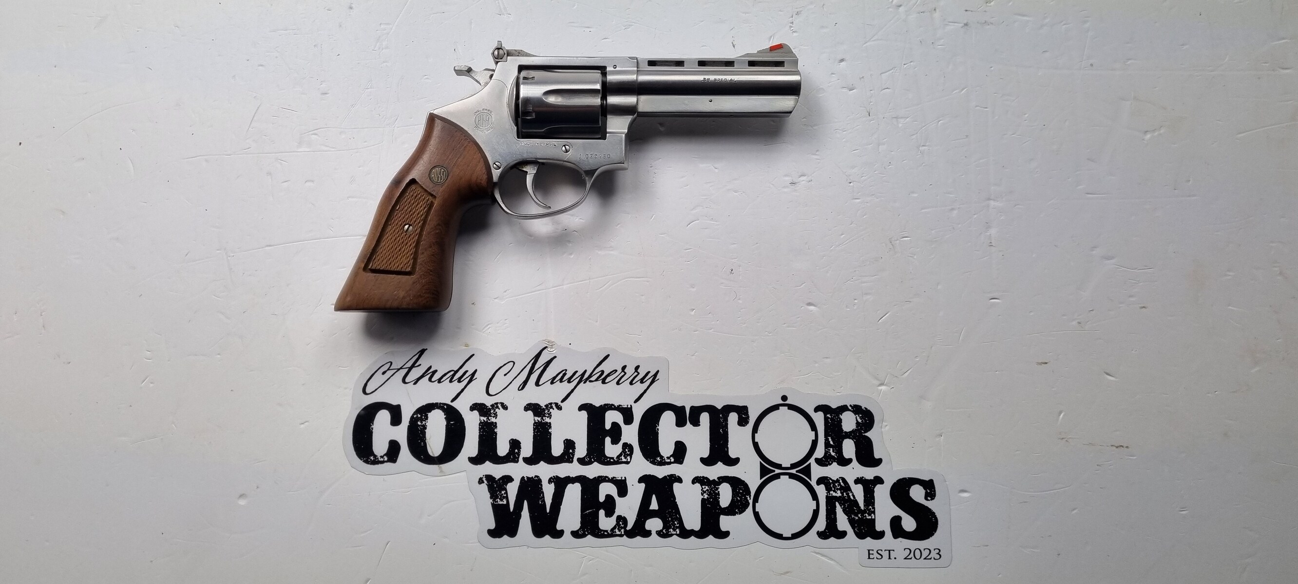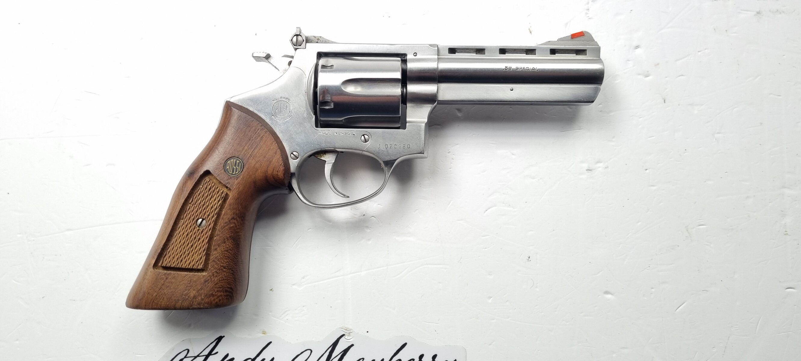 Chambered For .38 Special, Equipped With a 4" Vent Rib Barrel, Red Ramp Front Sight and Adjustable Rear, Wood Grips, and Appears in Good Pre-owned Condition.