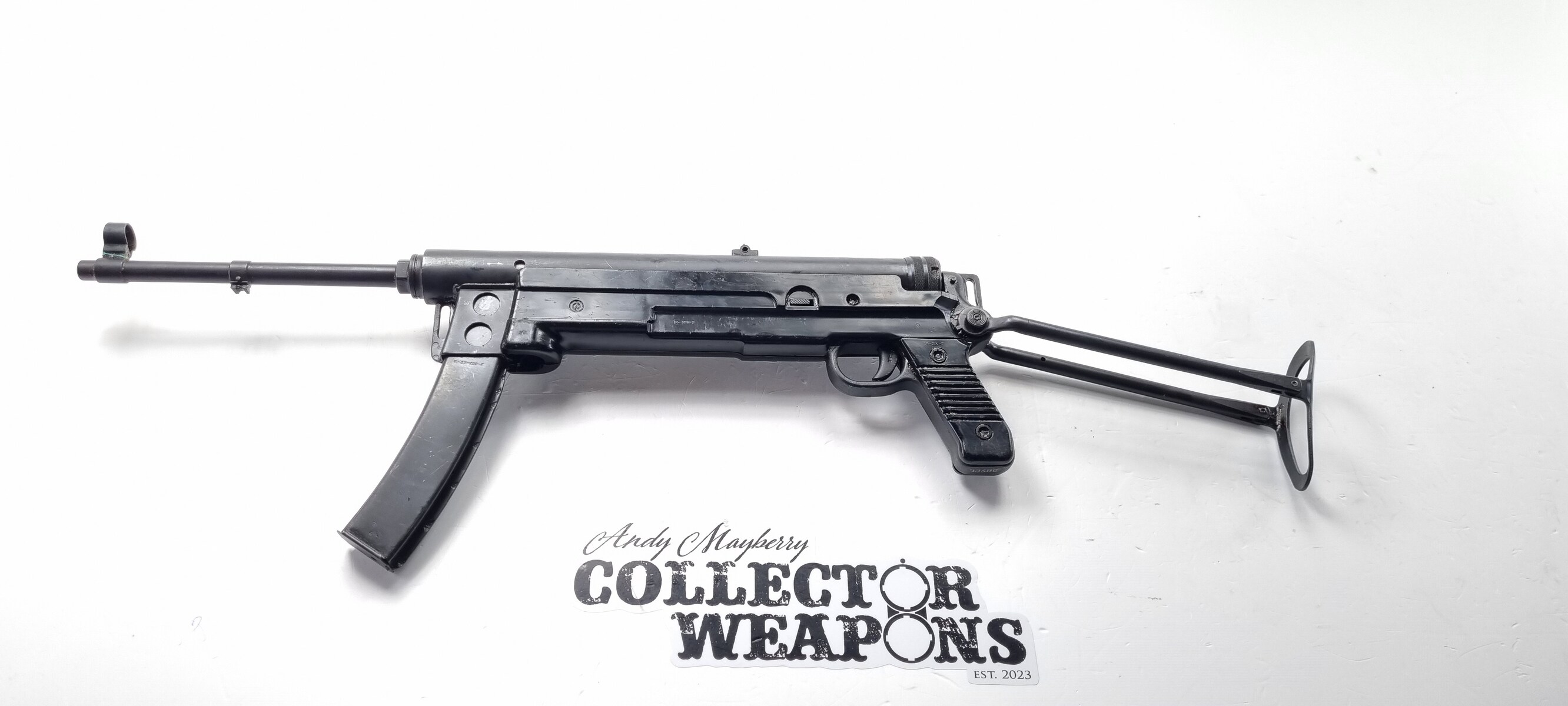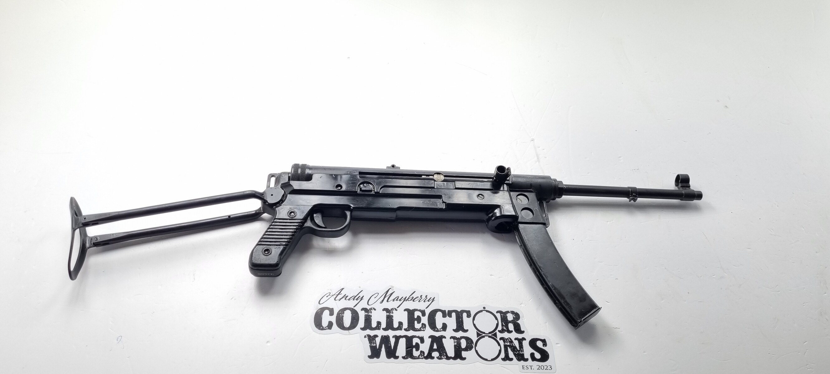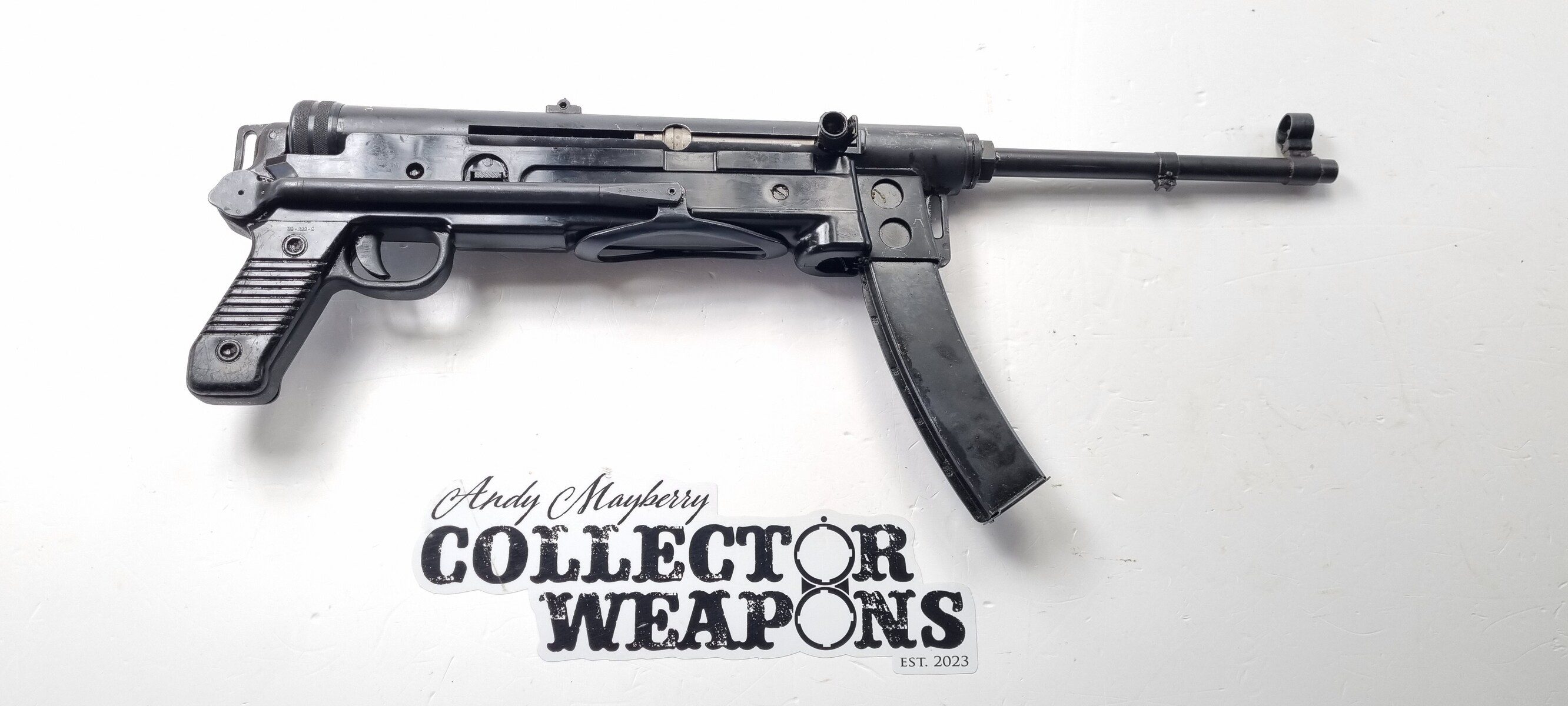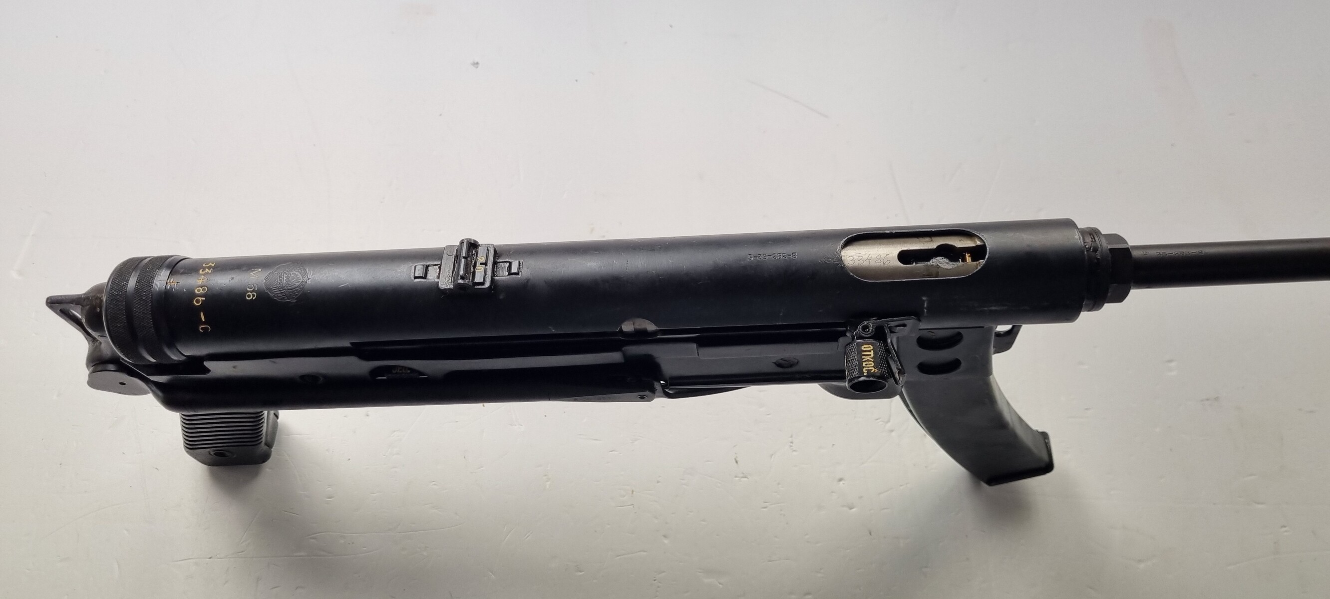 Manufactured by Zastava, the M56 had a long tubular receiver and a plastic moulded lower receiver and pistol grip. After issues with the plastic lower cracking in cold weather a wooden insert inside the lower was added. The M56 copied the MP40′s folding stock and as a result the weapon is quite long, measuring 60cm (23in) with the stock extended.