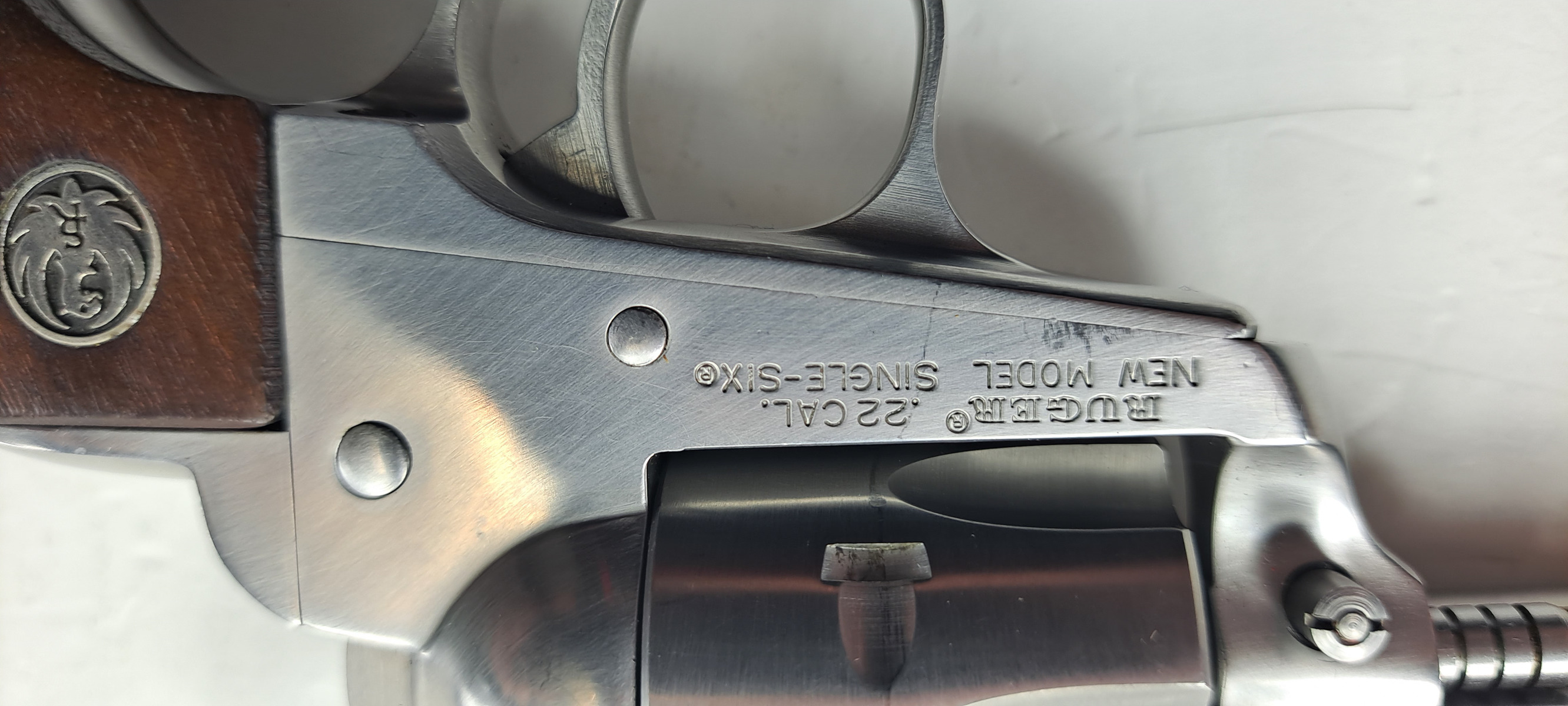 .22LR Ruger Single Six Stainless Steel Revolver. Excellent original condition with tight lock up and retains almost all factory finish. A sought after pistol these days!